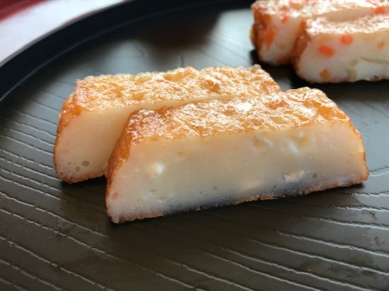 魚肉(ミナミダラ、グチ)、プロセスチーズ、でん粉(小麦を含む)、砂糖、本みりん、食塩、植物油(なたね、落花生)/トレハロース、調味料(アミノ酸等)、大豆粉、乳化剤
