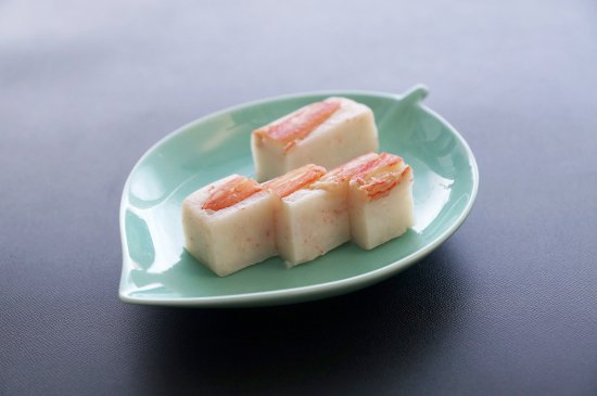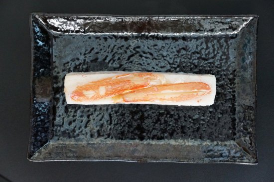 紅ズワイを生地に合せ、その上にずわい蟹を のせてじっくり焼き上げました。目と舌でかにを楽しめる贅沢な一品。